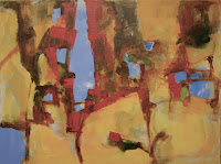 Here is the work in progress on a painting that I have been working on I keep trying to get the grays and white edges right and I can seem to get it to work. I am also trying really tell a story with these little pieces of brilliant color. I know that the photos don’t really represent the actual painting but they are close. It has become my working procedure to live with the painting for a few days and then return to it with fresh eyes and renewed energy and this painting will change again. The painting on the left is the old version.